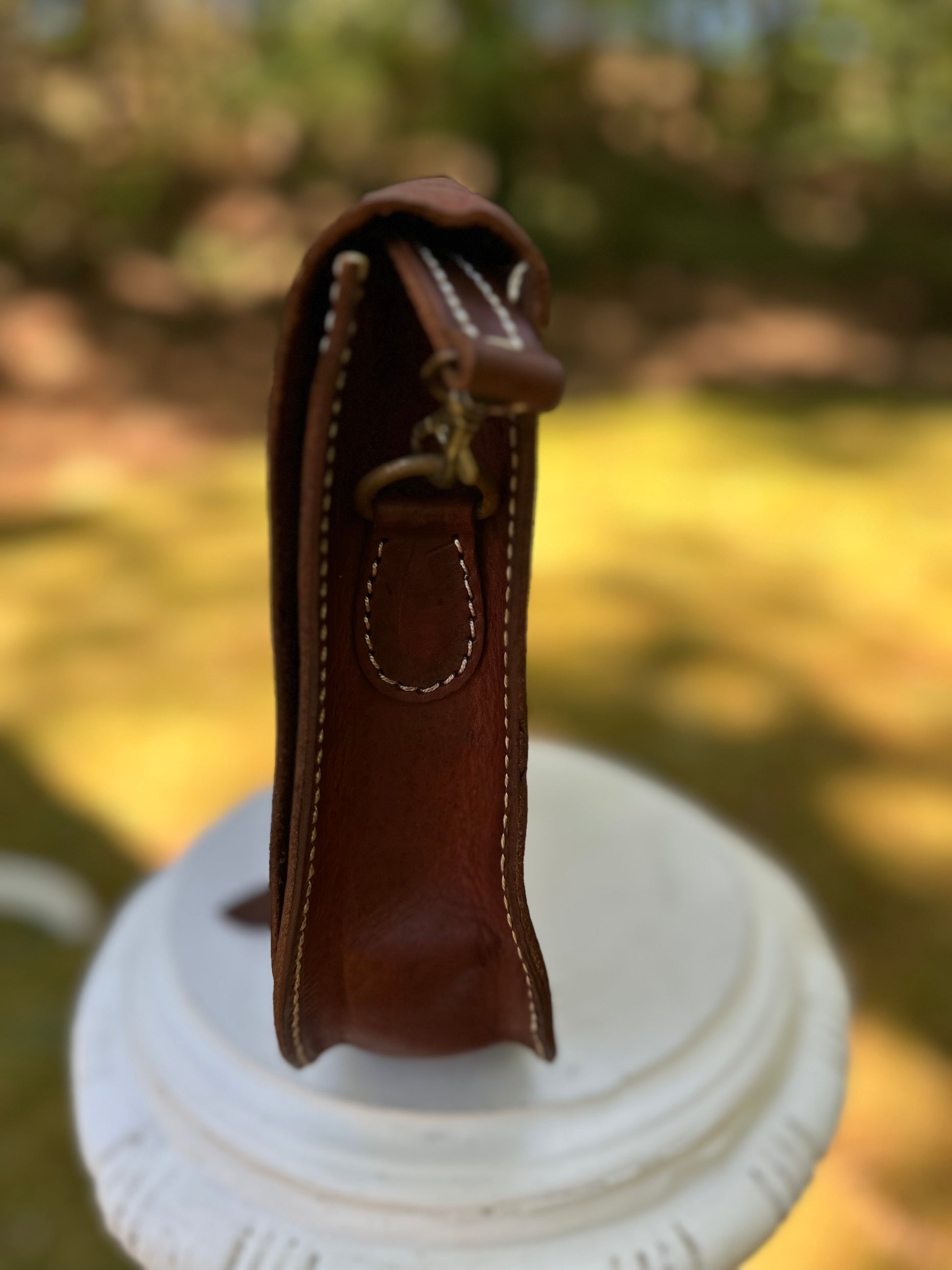 Natural beauty and character define this elegant saddlebag with a rustic interior. It doesn't have any zippers or pockets.
